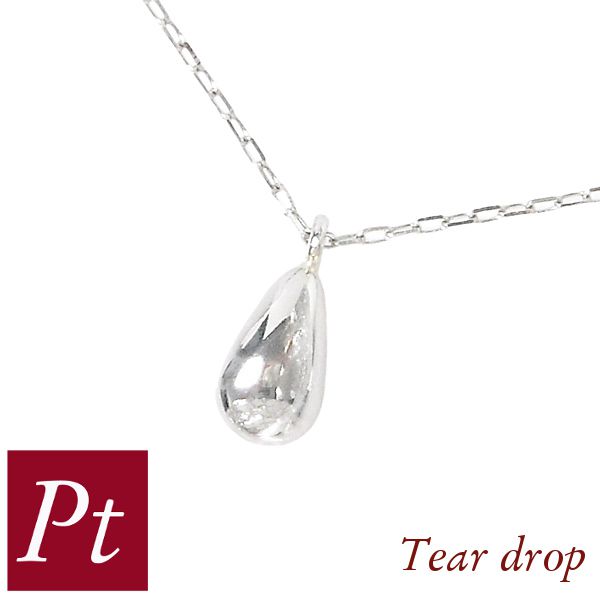 ぷっくらとかわいいティアドロップをモチーフとした、しずく型のプラチナネックレス。