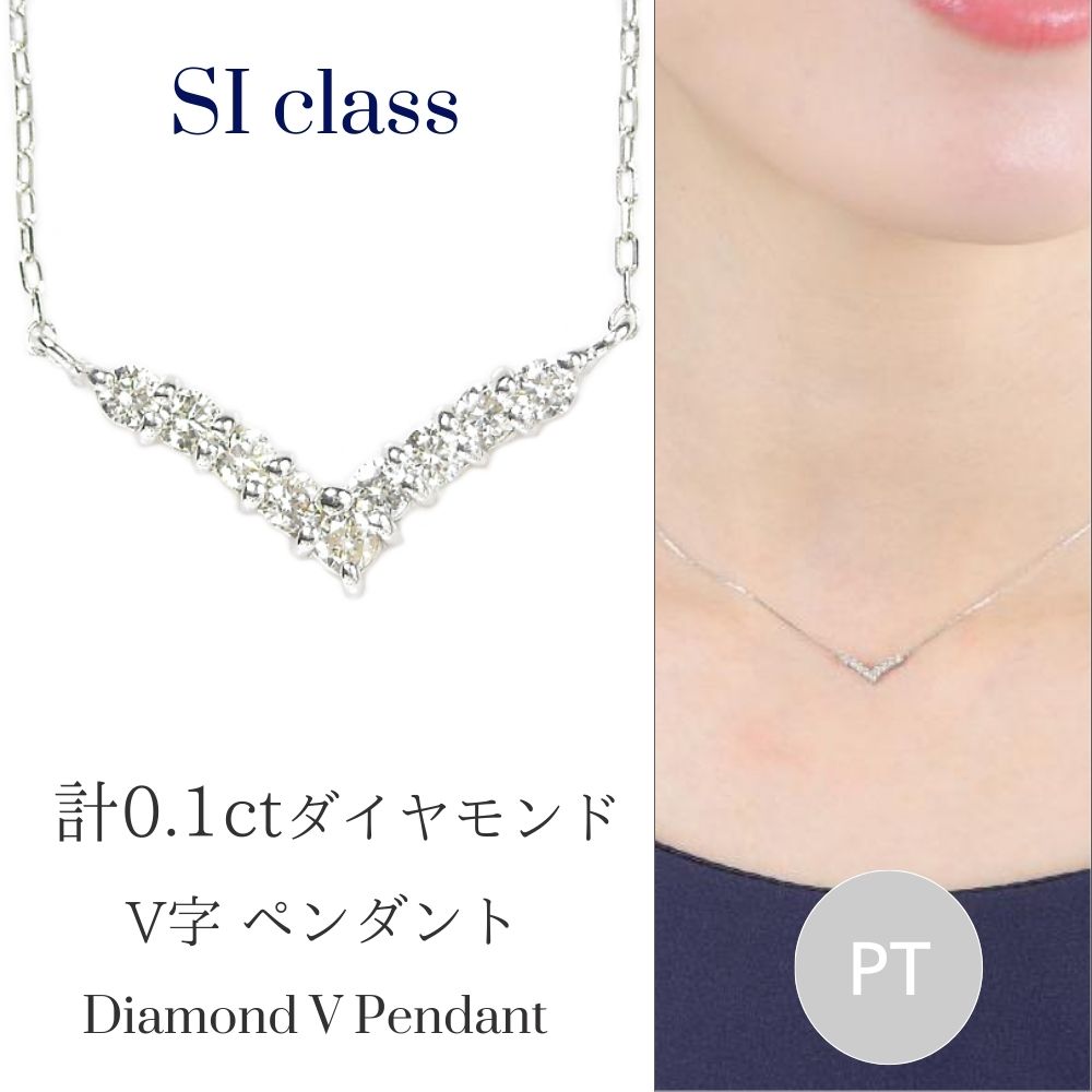 ネックレス v字 レディース 50代 40代 60代 天然ダイヤモンド 30代 20代 プラチナ SIクラス 計0.1ct ペンダント 4月誕生石 妻 彼女 ギフト プレゼント 女性用