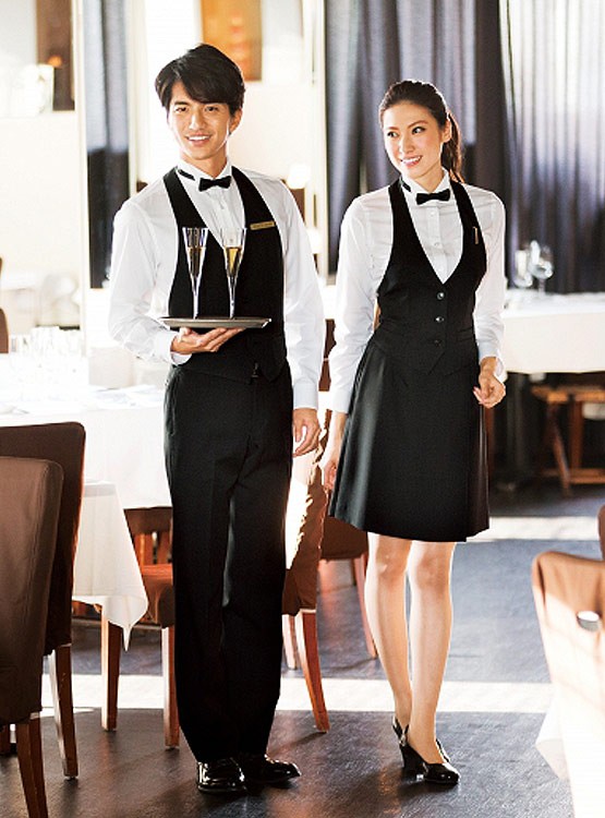 〇ホールスタッフ、カウンタースタッフ、ワゴンスタッフ、セレモニー、カフェ、レストラン、グランメゾン、ラウンジ、フロントクラーク、受付、ソムリエ、マネージャー、コンシェルジュ、レセプション、バンケットなどのフォーマルなユニフォームにご利用いただけます。