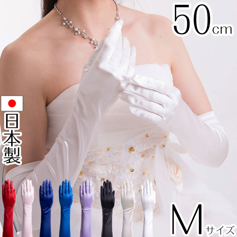 サテンロンググローブ Mサイズ 日本製 約50cm ブライダル ウェディング