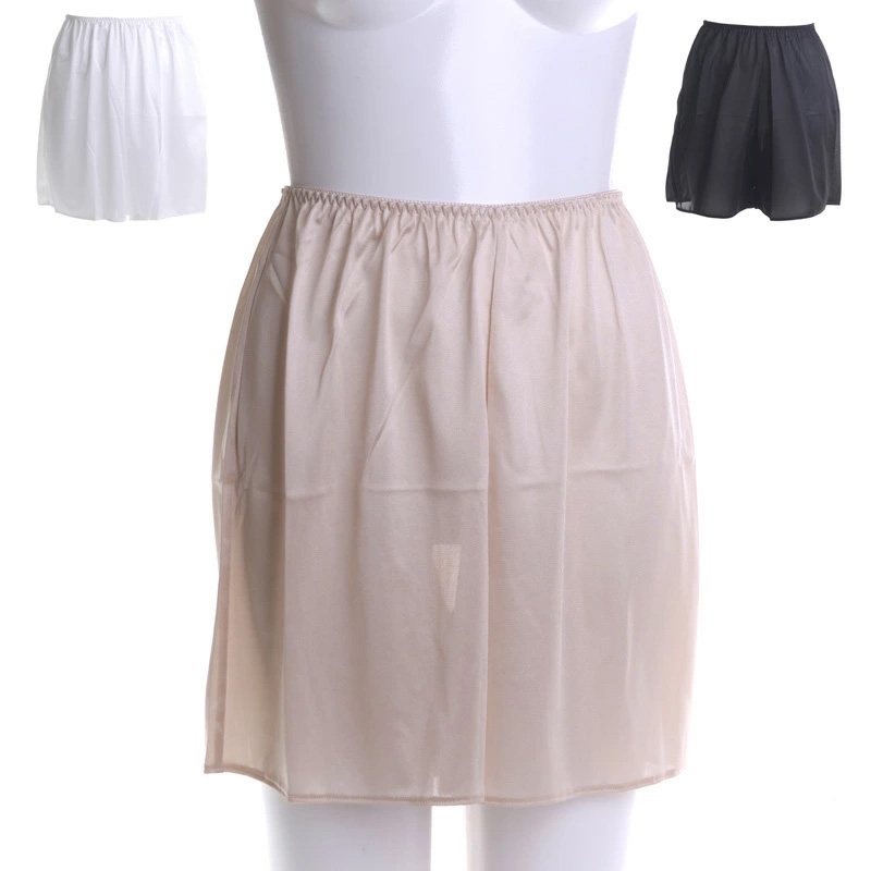 ミドル丈キュロット ペチパンツ ペチパン ペチコート 脇丈40cm 無地 サテン 透け防止 S M L LL 2L XL ブラック モカ ホワイト