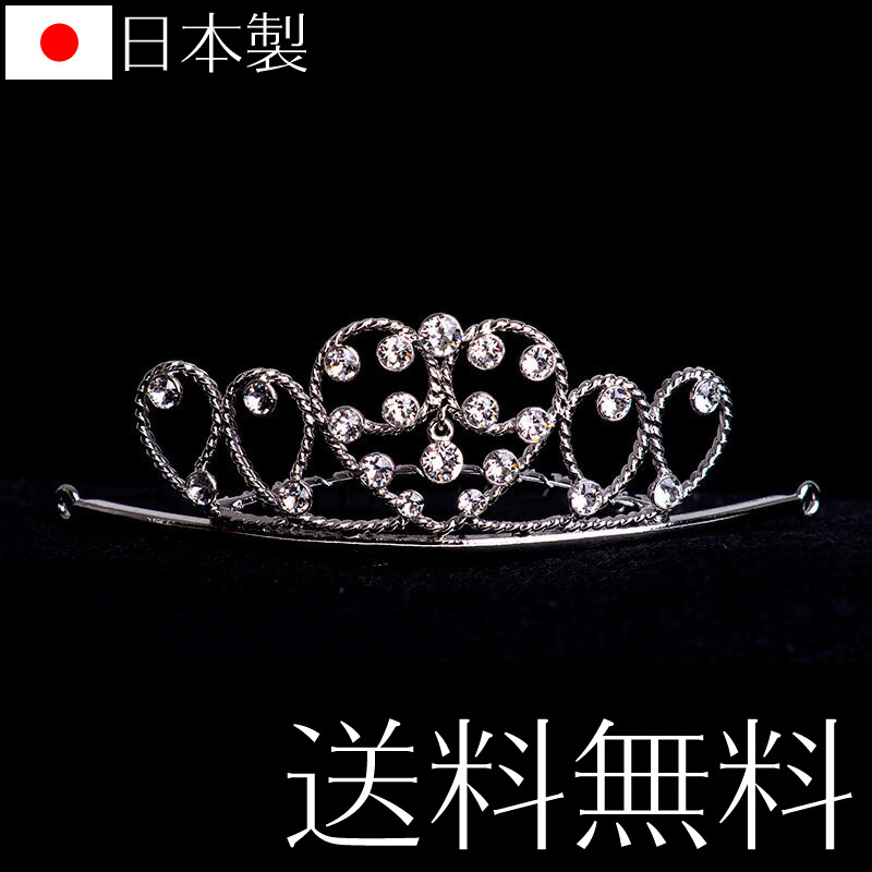 クリスタルハートミニティアラ 90 日本製 国産 スワロフスキー 花嫁 ウェディングドレス ブライダル 結婚式 パーティー 挙式