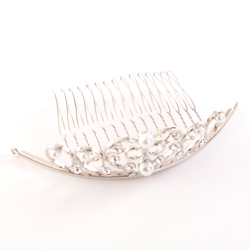 ハートモチーフとスワロフスキーの最強の組み合わせに、パールビーズを加えることでより繊細なミニティアラとなりました。センター下のパールビーズはひかえめに揺れます。