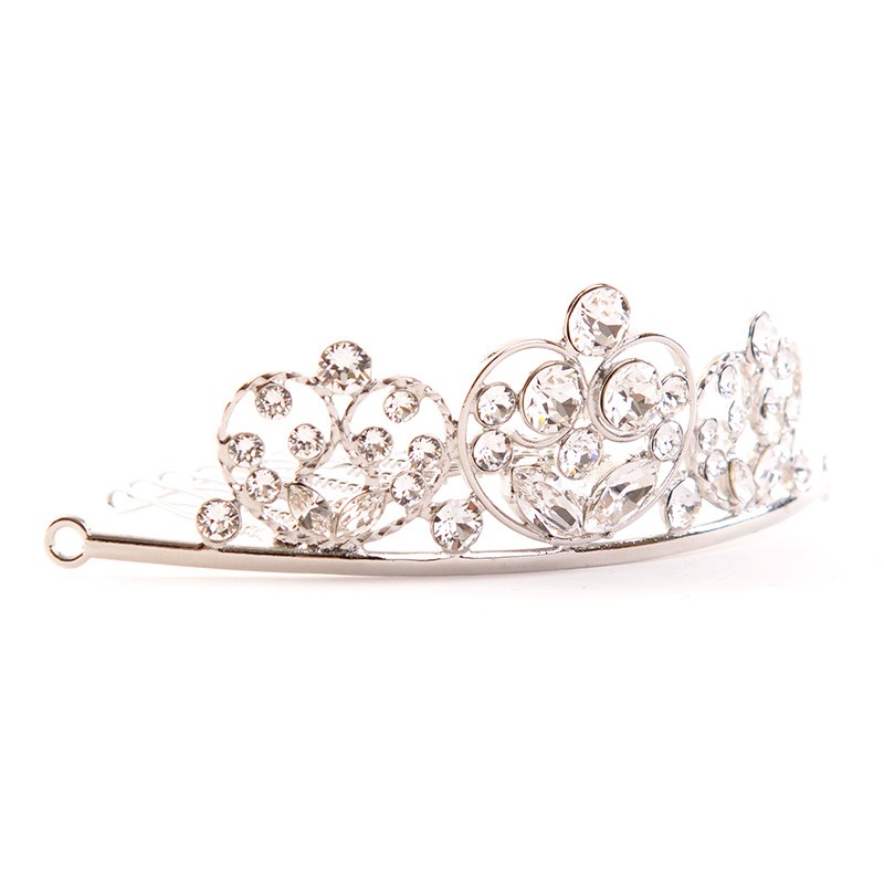 りんごをモチーフにしたようなキュートなフレームに、惜しげもなくぎっしりスワロフスキークリスタルを埋め込んだミニティアラ。大小さまざまなクリスタルを使うことで光がまばゆく拡散します。