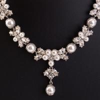 雪の結晶をモチーフにしたような一連のネックレス。パールビーズはウェディングドレスとの相性も〇