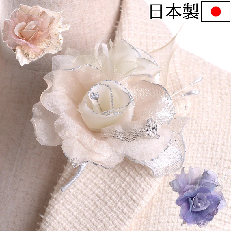 日本製コサージュ オーガンジー薔薇292 入学式 入園式 卒業式 卒園式 おしゃれ