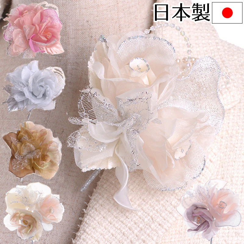 日本製コサージュ オーガンジー薔薇メッシュ293 入学式 入園式 卒業式 卒園式 おしゃれ
