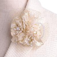 ポピー(ひなげし)をモチーフに3花のブーケとし、パールビーズのアーチ、メッシュで広がりを持たせた華やかなコサージュです。花弁の大きめパールビーズがきれいです。ゴールド系なのでダーク系・アイボリー系どちらのジャケットにもなじみます。ひなげしには「いたわり」や「思いやり」という花言葉があります