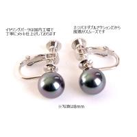 高級8mm南洋黒蝶花珠オーロラ本貝パールイヤリング タヒチ黒蝶系 黒真珠系 宝飾店仕様 ブラックフォーマル 葬祭 葬式 通夜 告別式