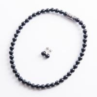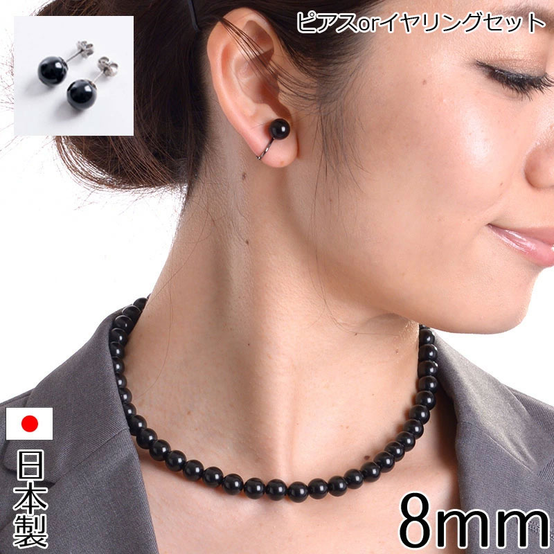 8mm天然ジェットネックレス&イヤリングorピアスセット日本製 ブラックフォーマル
