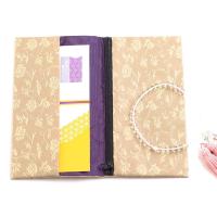 表装裂とは表具・表装などに用いられる織物のことをいいます。本商品はそれらに用いられた模様を伝統ある技法で現代風にアレンジしたものです。東洋的な気品と日本独特な格調を再現しています。右側がファスナー式の数珠入れ、左側が金封ふくさになっています。荷物がコンパクトになり大変便利です。