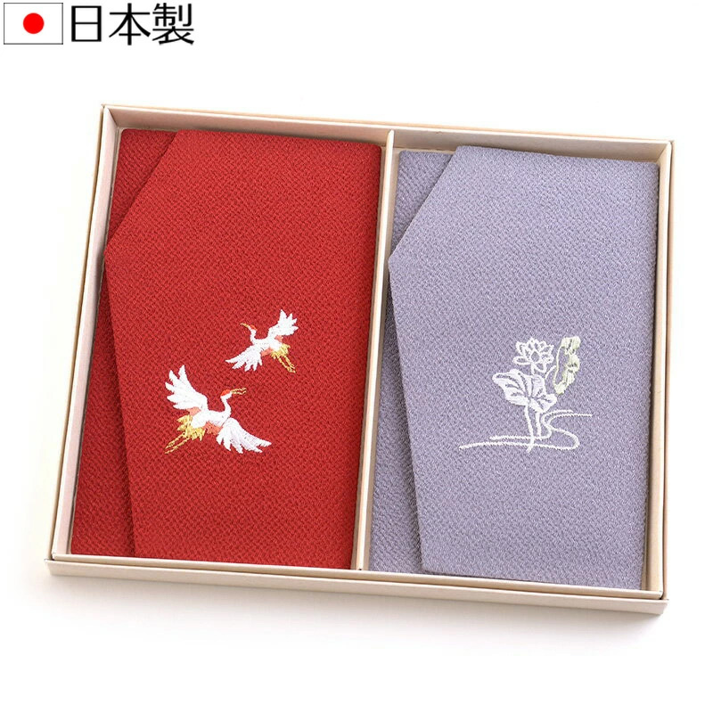 ちりめんふくさ慶弔両用2枚セット 紙箱入 金封刺繍袱紗 結婚式 冠婚葬祭 男性用 女性用