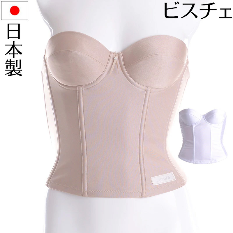 aurora日本製ロングビスチェ 胸パット2点セット モカベージュ ブライダルインナー 花嫁 ウェディングドレス