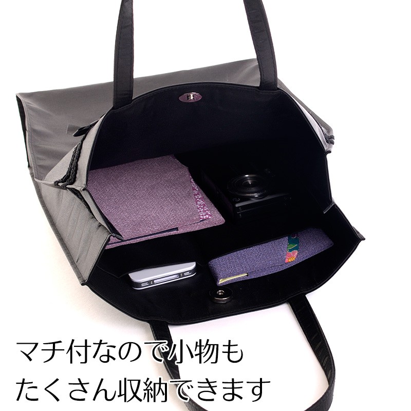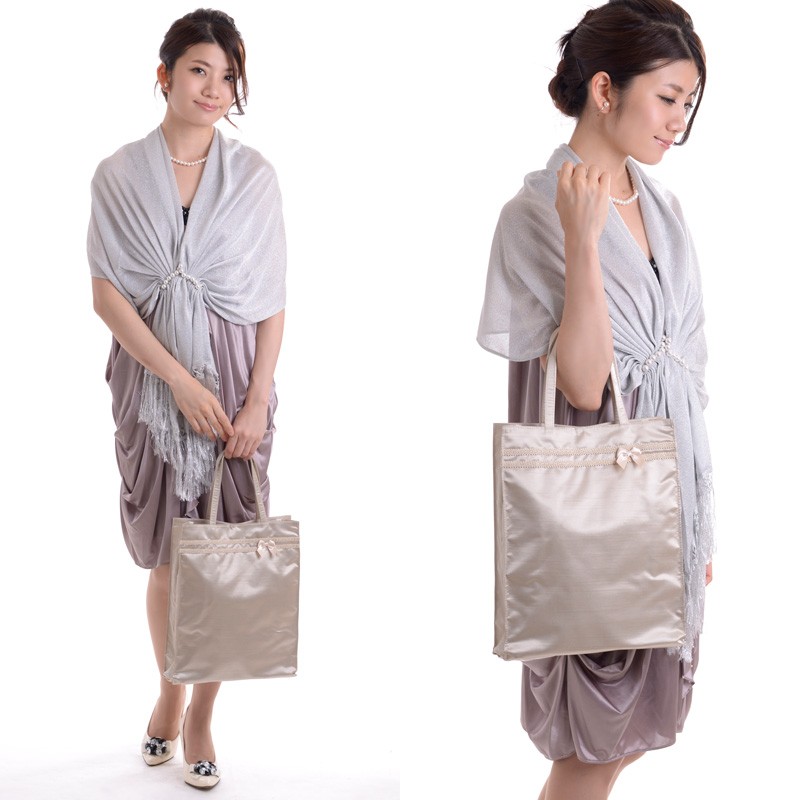 高級感のあるサテンシャンタン生地にブレードとサテンリボンを組み合わせた上品できちんと感のあるA4対応のサブバッグです。