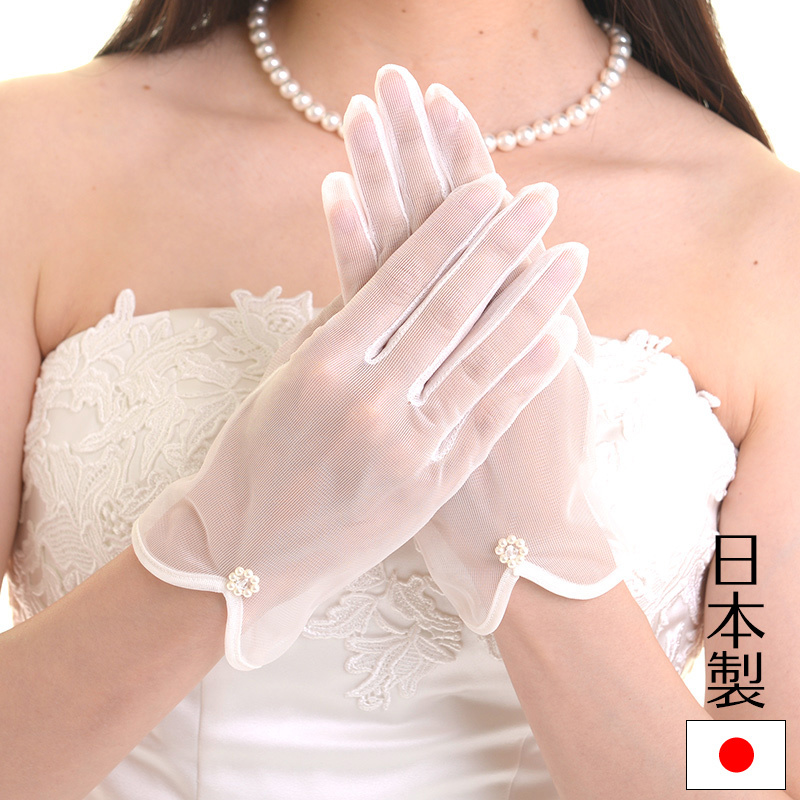 ウェディンググローブ パール 日本製 手袋 ブライダル 花嫁 結婚式 挙式 オフホワイト 生成