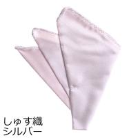 ポケットチーフ 折加工済 挿すだけ 西陣織 京都 結婚式 シルク 絹 新郎 日本製 シルバー ホワイト 白 無地