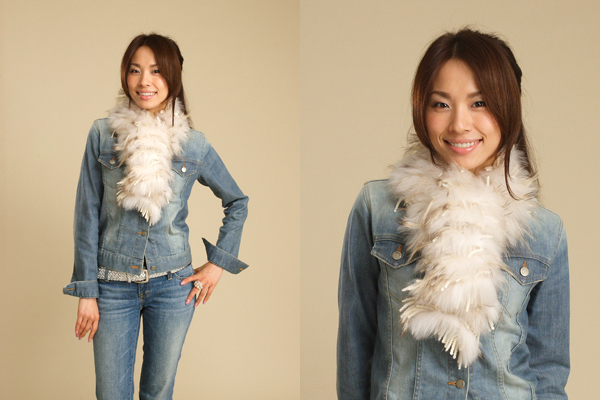 ■品名:オールラウンドに着用できる毛皮ストール ラクーンファーレイヤードストール 毛糸で編んだあたたかな生地と気品あるリアルファーが織りなすハーモニー