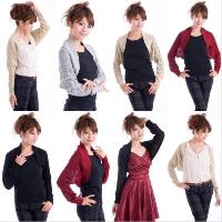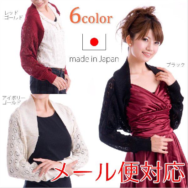 長袖ボレロ。結婚式や2次会にふさわしいボレロです。素敵なパーティードレスと合わせてください。卒業式や謝恩会などのフォーマルや、ちょっとしたお呼ばれにも着て行けます。すぐれた素材で丁寧に編み込まれた日本製ボレロです。マフラー風に首に巻くことも可能です。化繊主体ですが肌触りがいいですよ。