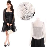 便利な長袖ボレロ。結婚式や2次会にふさわしいボレロです。素敵なパーティードレスと合わせてください。卒業式や謝恩会などのフォーマルや、ちょっとしたお呼ばれにも着て行けます。袖口と裾にトーションレースが付き、さりげなくラメ糸が輝きます。さすがは日本製で、着心地もよく、見た目もしっかりしています。UVカット効果のある素材を使用していますので、ガーデンウェディングや夏の外出用にお勧め。