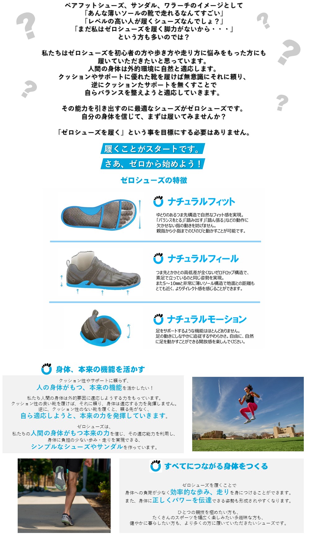 ゼロシューズの原点となる非常にシンプルなモデル。シンプルだからこそ自分の身体を使う感覚をより感じ取ることができ、ナチュラルムーブメントを実感しやすいモデルになっています