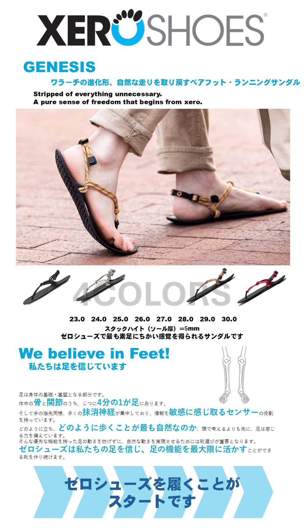 【XERO SHOES ゼロシューズ】ジェネシス ベアフット サンダル 登山 ハイキング トレイル ランニング ウォーキング ワラーチ