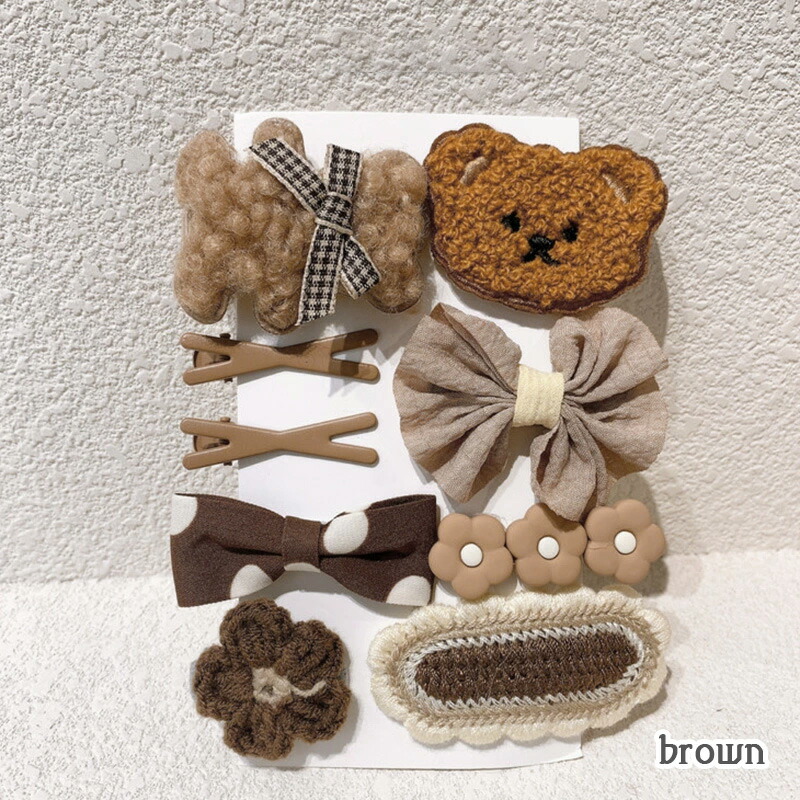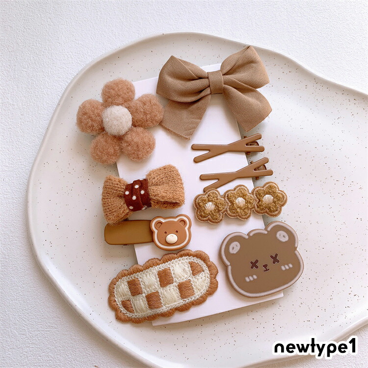 【即納】キッズ ヘアピン 子供 ベビー ヘアピン 赤ちゃん ヘアピン ヘアアクセサリー 髪留め かわいい おしゃれ 花 リボン クマ お誕生日 プレゼント☆9点セット 8点セット キッズ 小物 ベビー女の子 新生児 プチプラ chuchubebe chuzakka0076