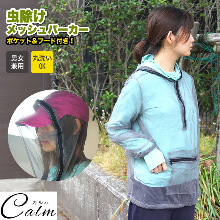 虫よけパーカーを捲らなくても小物の出し入れができます。