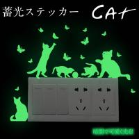 蓄光ステッカー 猫 ねこ 夜光ステッカー ウォールステッカー 蓄光 壁 壁紙 ウォールシール 貼り付け 光る インテリア スイッチ ステッカー