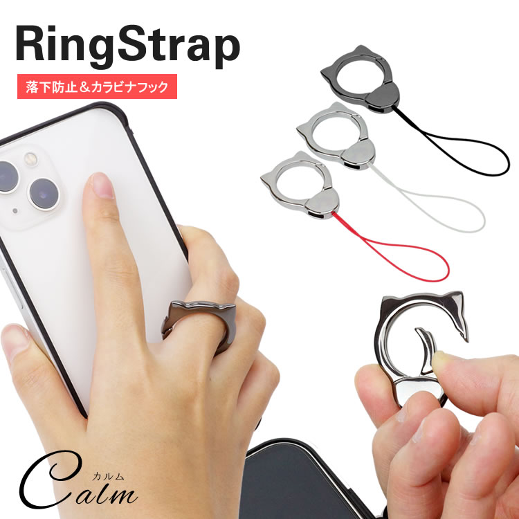 リングが指に引っかかってスマホが地面に落下するのを防止します。