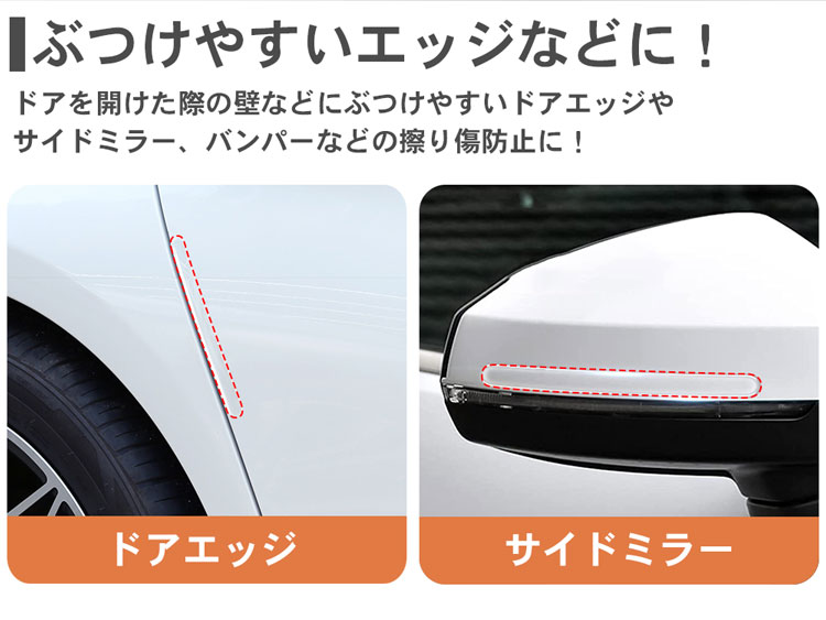 ドアを開けた際の壁などにぶつけやすいドアエッジやサイドミラー、バンパーなどの擦り傷防止に!