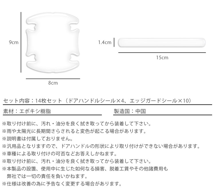 【セット内容】14枚セット(ドアハンドルシール×4、エッジガードシール×10)