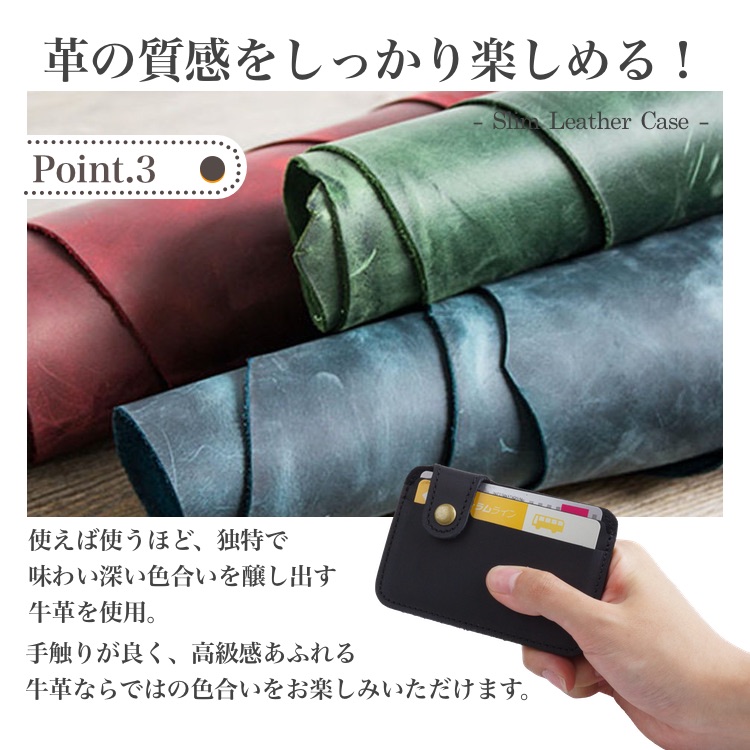 使えば使うほど、独特で味わい深い色合いを醸し出す本革を使用。