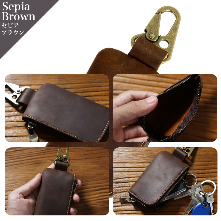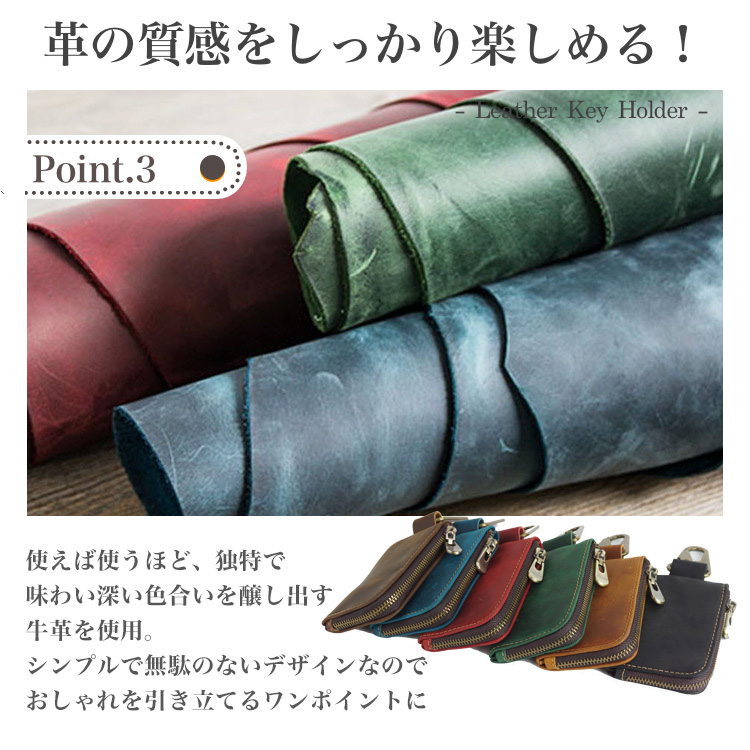 使いやすさを重視したシンプルなキーケース。革の色味を楽しめます。