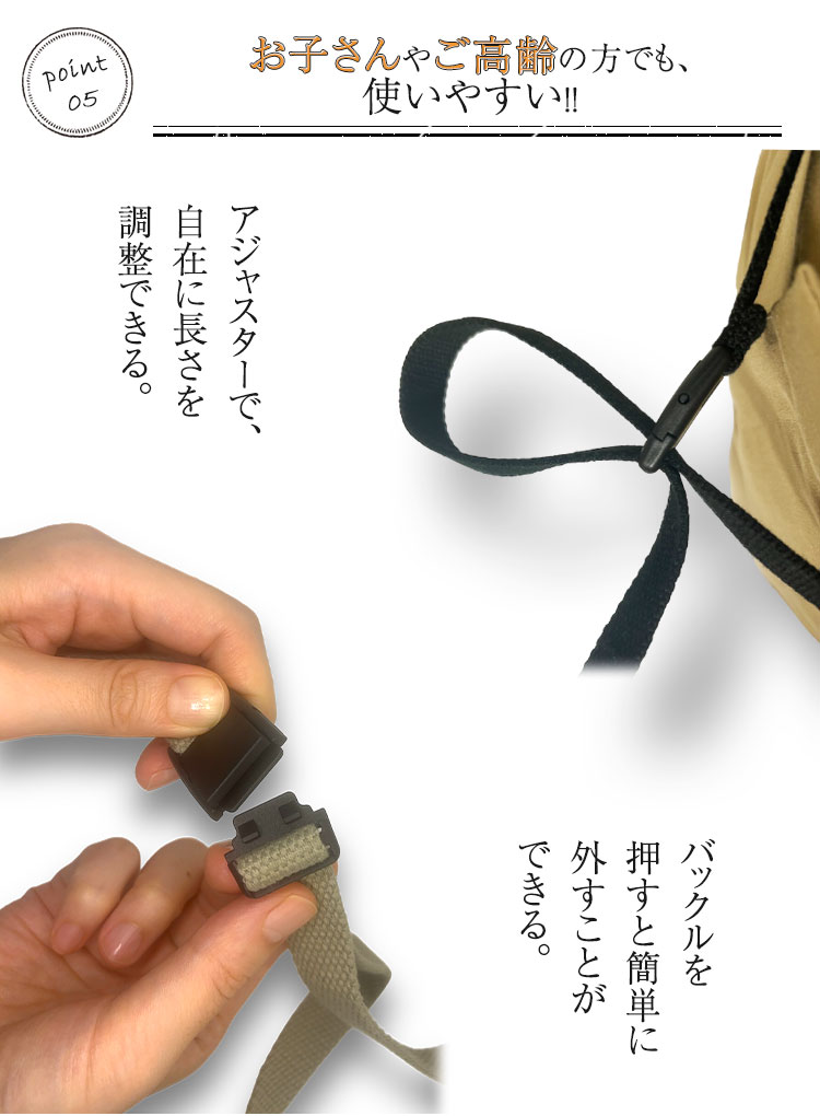 子どもからお年寄りまで簡単にワンタッチでベルトを着脱できる!