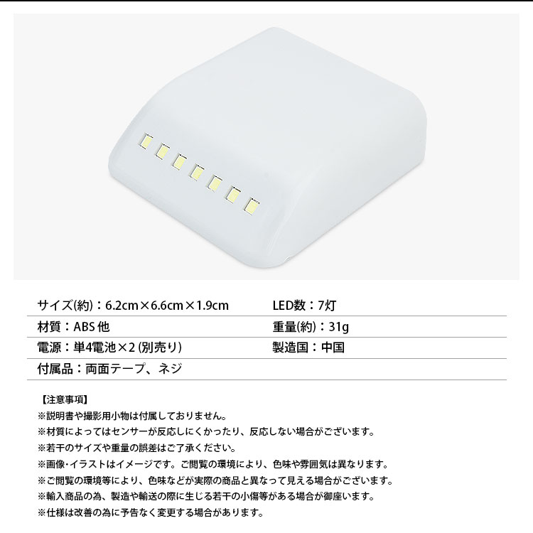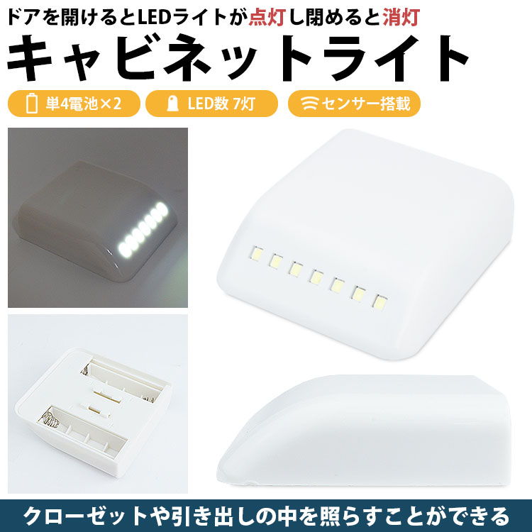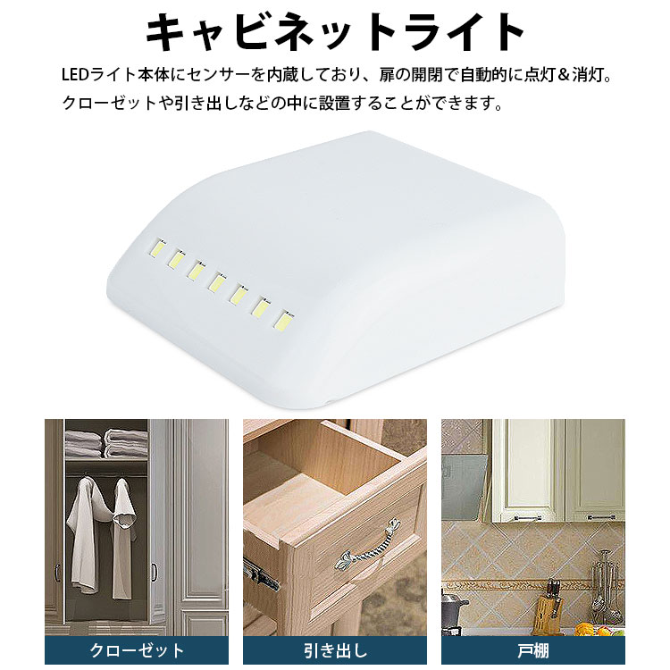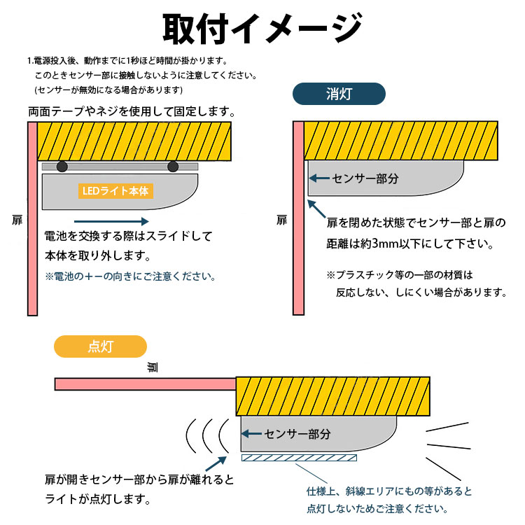 LEDライト本体にセンサーを内蔵しており、扉の開閉で自動的に点灯&消灯。