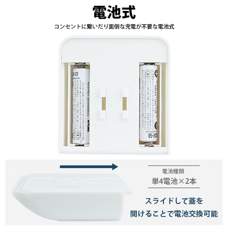 コンセントに繋いだり面倒な充電が不要な電池式