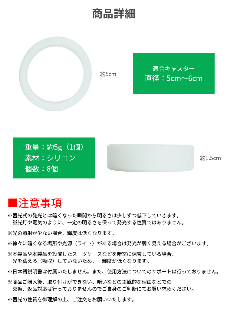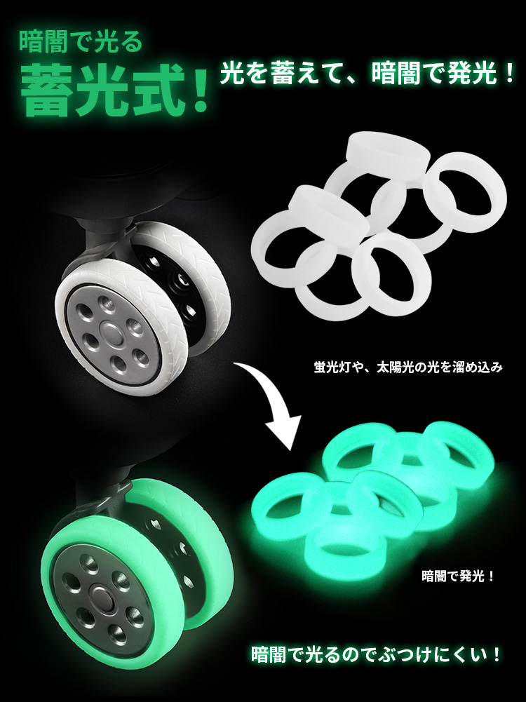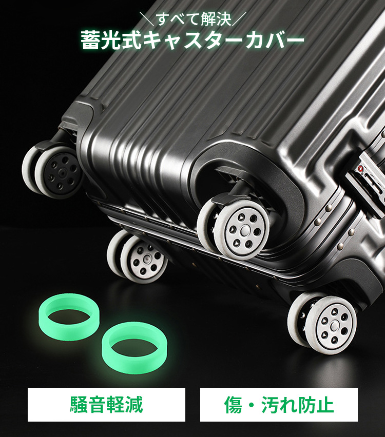 暗闇で光るのでスーツケースを見つけやすく、ぶつけにくい!