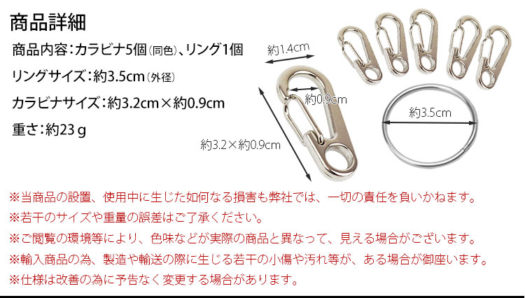 内容:カラビナ×5、リング×1