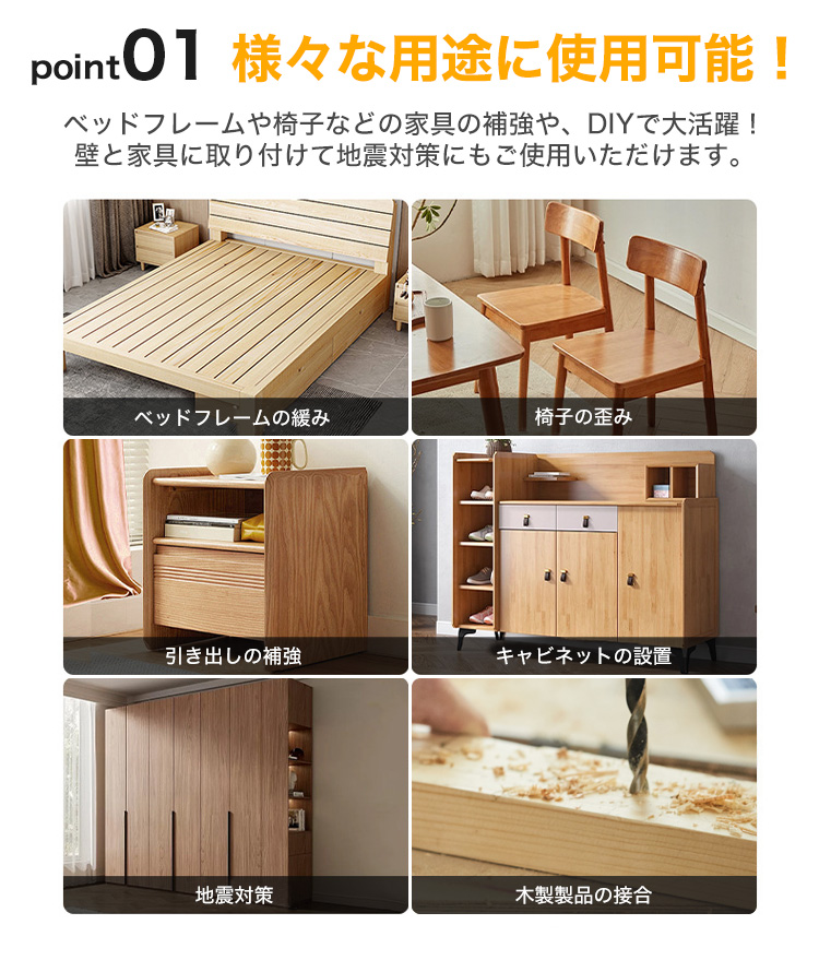 DIYや家具の補強など、様々な用途に使用が可能なL字型金具。