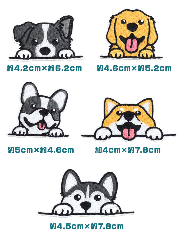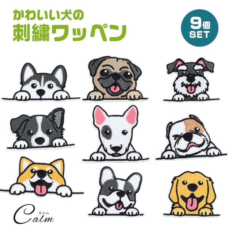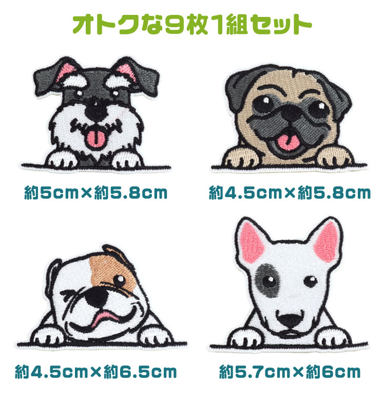 9種類各1枚入り。犬好きにはたまらない刺繍ワッペンです。