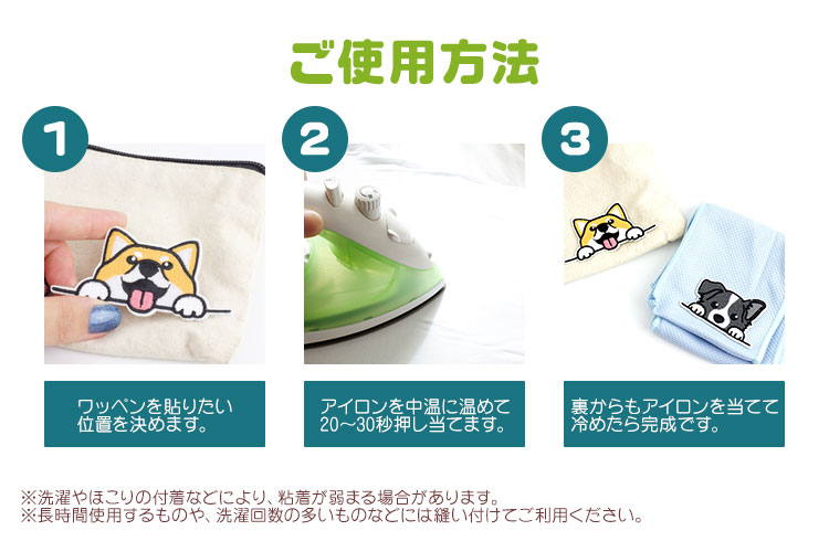 ※長時間使用するものや、洗濯回数の多いものなどには縫い付けてご利用ください。
