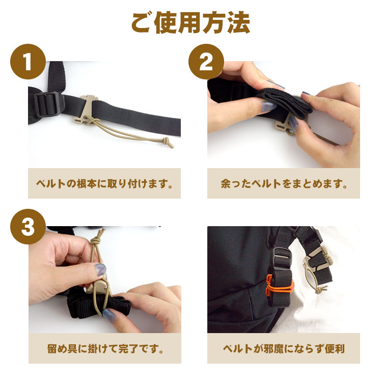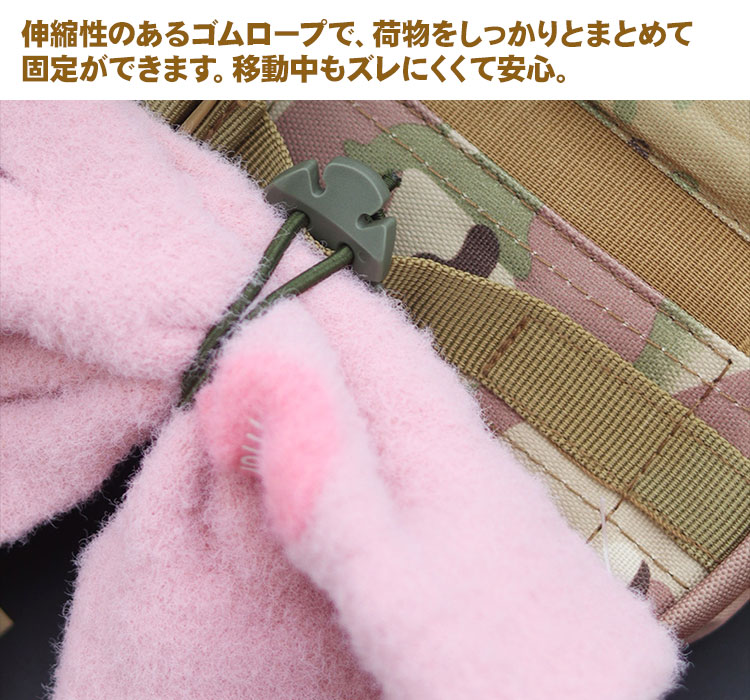 伸縮性のあるゴムロープで、荷物をしっかりとまとめて固定が可能!