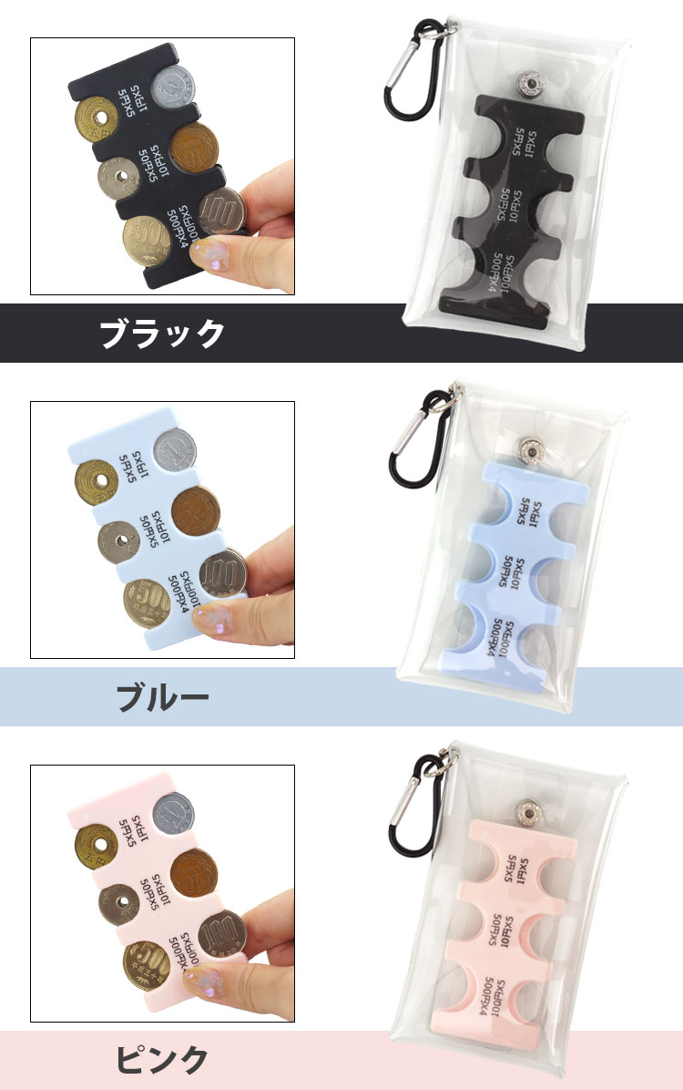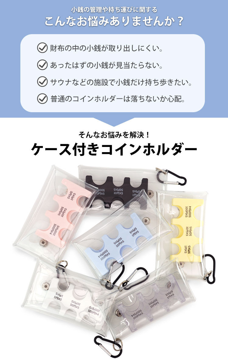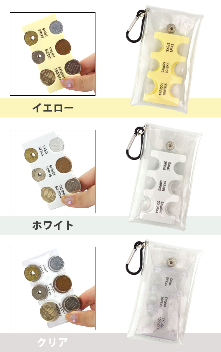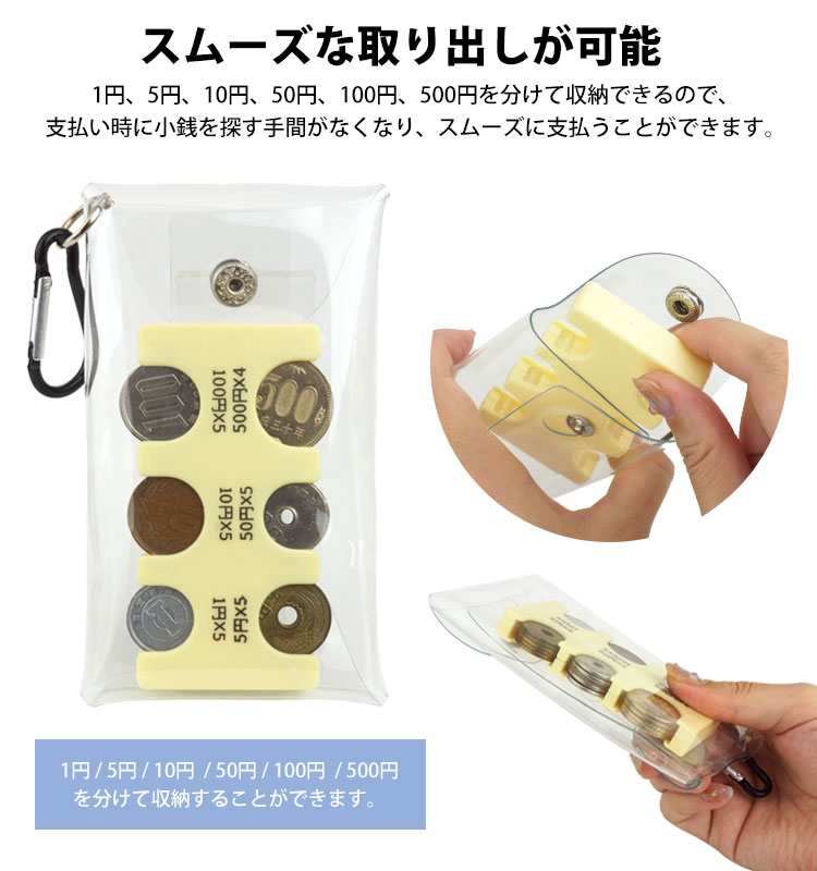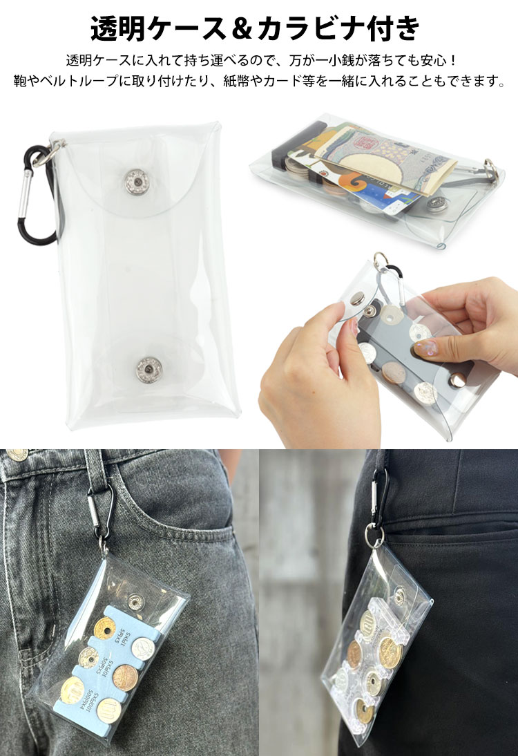 透明ケースに入れて持ち運べるので、万が一小銭が落ちても安心。