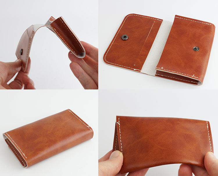 マットな質感のPUレザーに、ホワイトステッチが上品なアクセント。