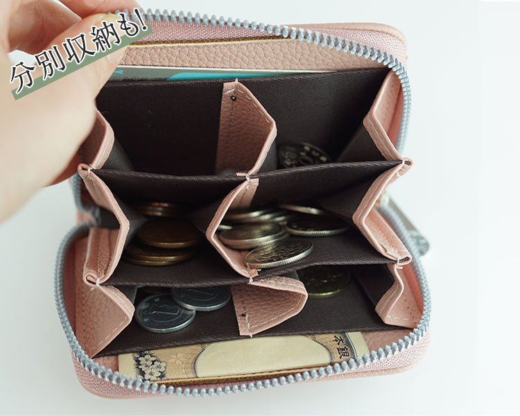 6つの仕切りで硬貨を分けて収納できるから、欲しいコインがすぐ見つかります。