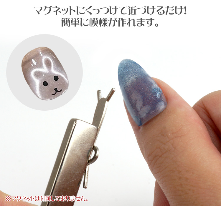 マグネットジェルを塗った爪に近づけると、かわいい動物の模様を作ることができます。