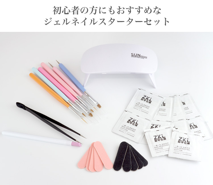 ジェルネイルスターターキット ネイルキット UVライト セルフ ネイル初心者 セット ブラシ ツイーザー シリコンブラシ ファイル プッシャー リムーバー プチプラ