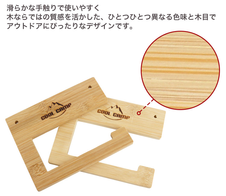 滑らかな手触りで使いやすく木ならではの質感を活かした、ひとつひとつ異なる色味と木目でアウトドアにぴったりなデザインです。