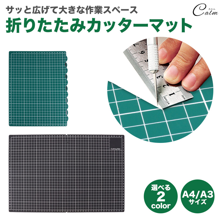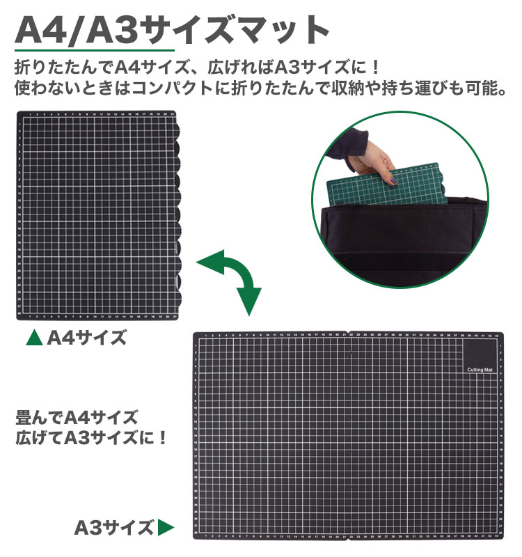A4とA3の両方のサイズで使うことができる折りたたみ式カッターマット。