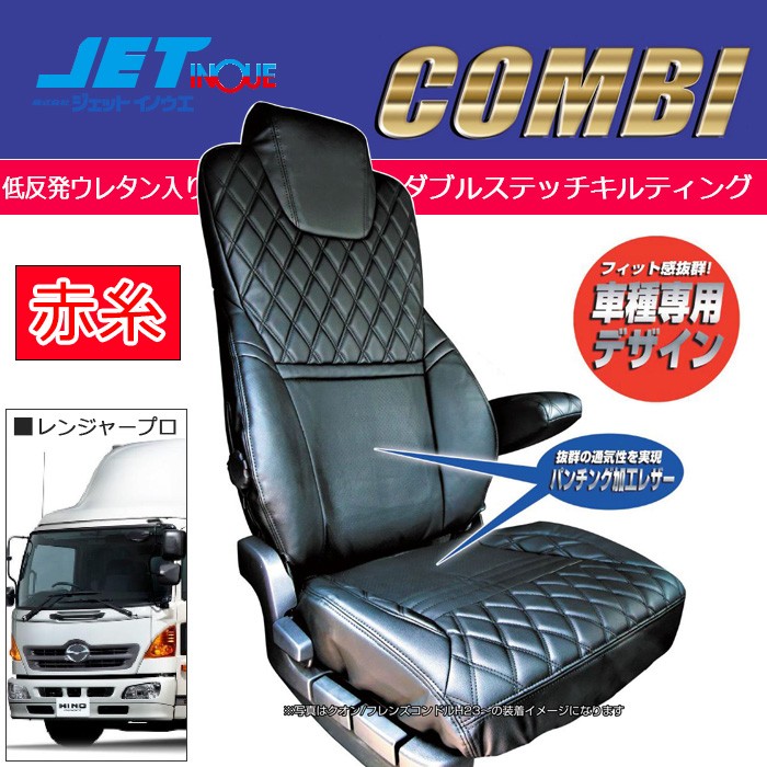 JETINOUE ジェットイノウエ シートカバーCOMBI 運転席用 (黒/赤糸) [HINO レンジャープロ/エアーループレンジャー H14.1~]